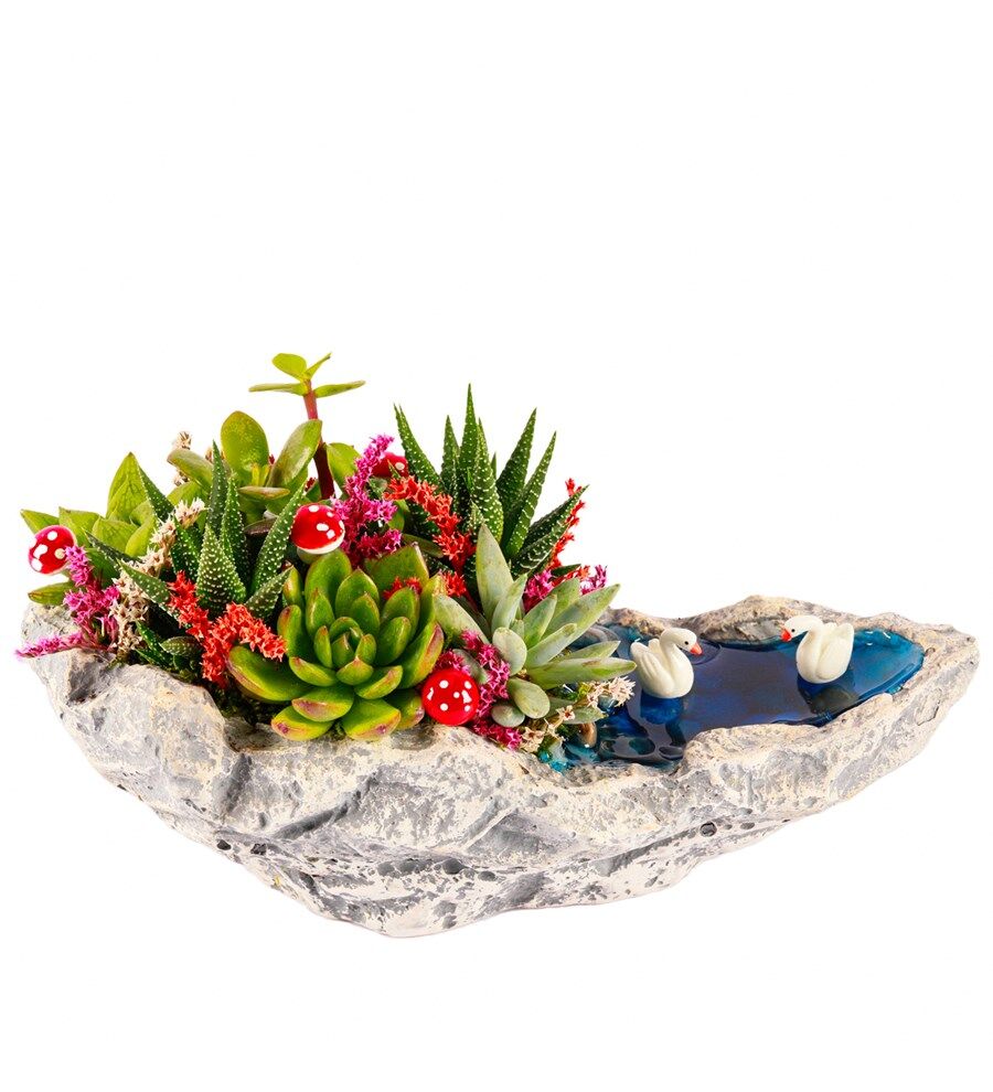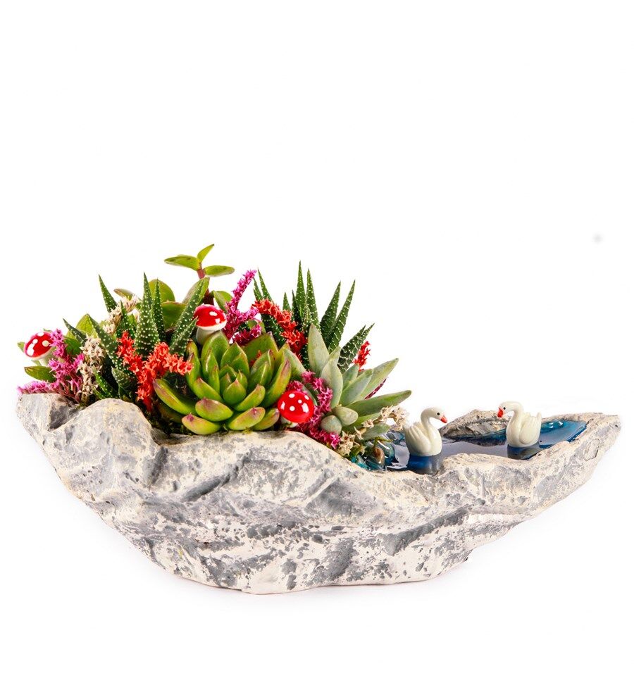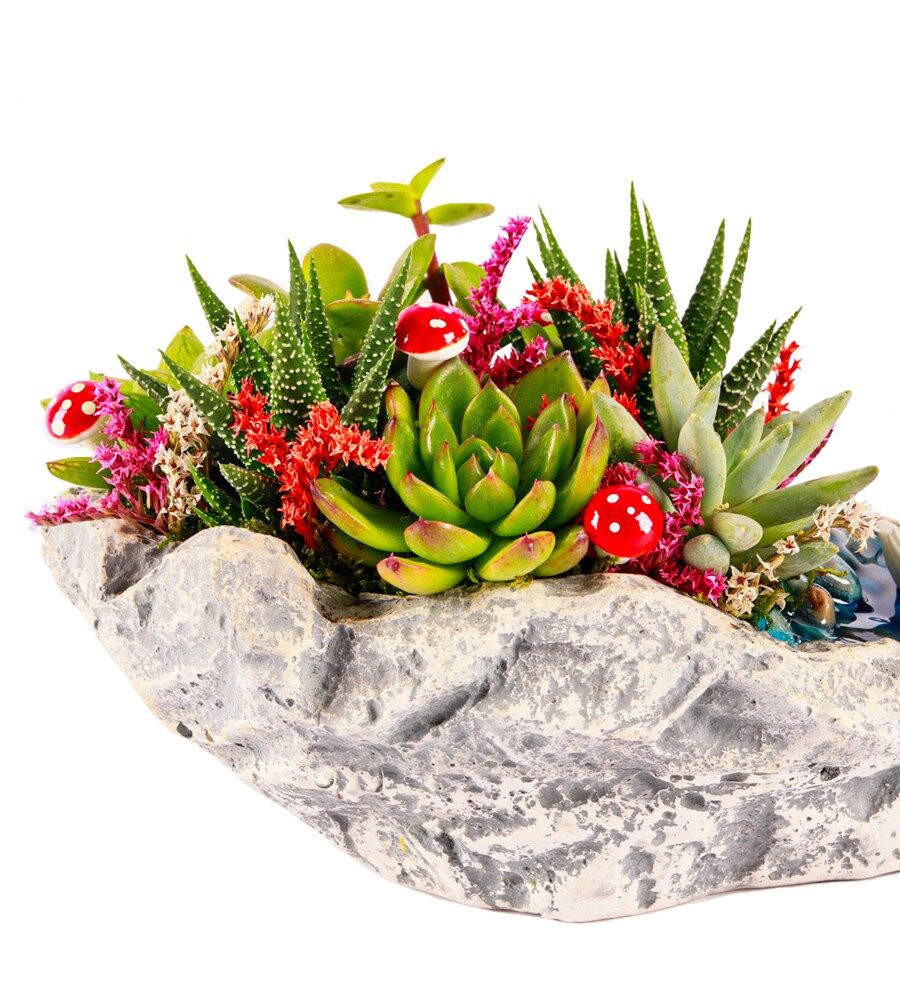– Özel tasarlanmış karışım sukulentler sayesinde, her türlü iç mekan koşuluna uyum sağlayarak uzun süreli bakım gerektirmez.